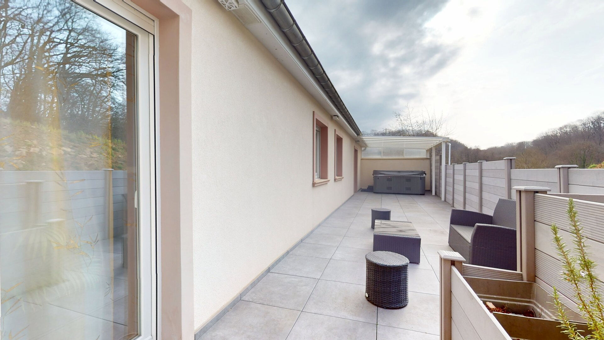 Puis un dégagement menant à la salle de bain et douche, un WC et 3 grandes chambres dont une parentale avec dressing et accès terrasse pour un moment détente en Jacuzzi.